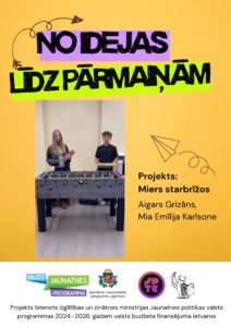 Projekts “No idejas līdz pārmaiņām” tiek īstenots ar Izglītības un zinātnes ministrijas Jaunatnes politikas valsts programmas 2024.–2026. gadam valsts budžeta finansējuma atbalstu.